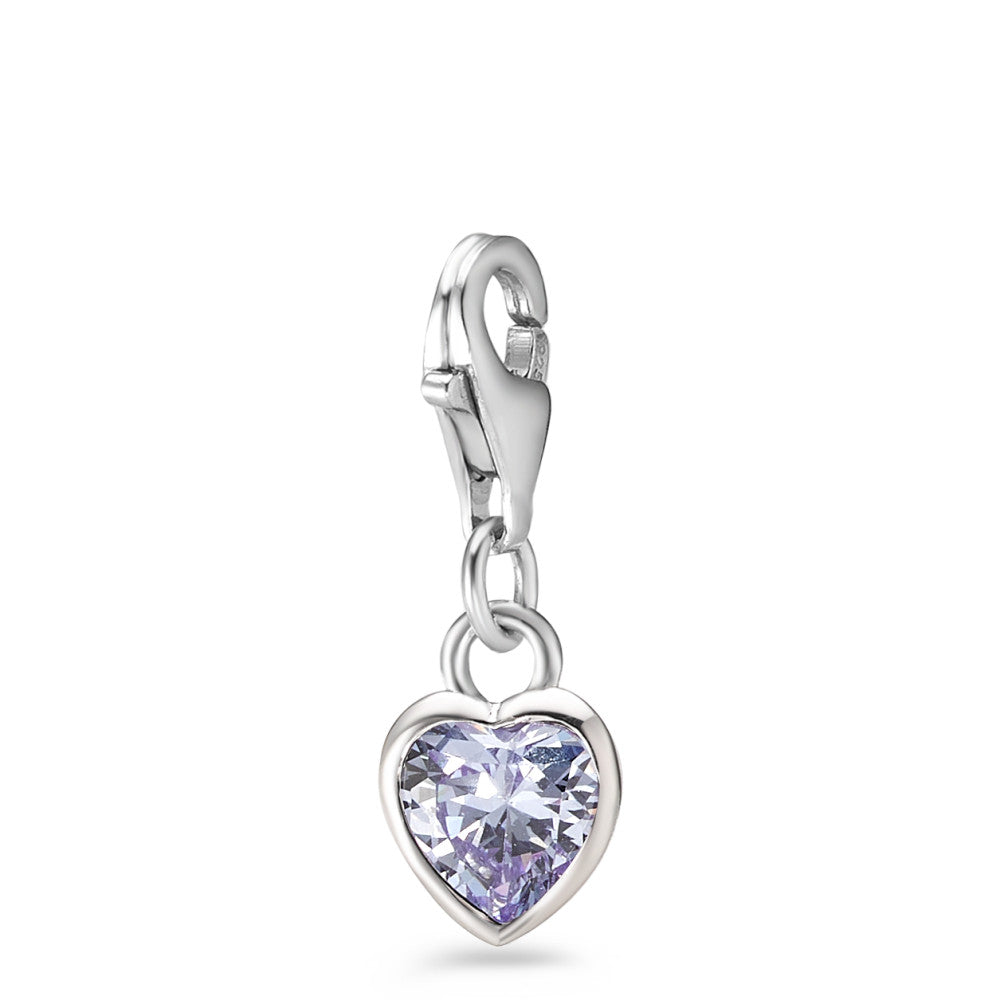 Charms Silber Zirkonia lila rhodiniert Herz Ø7 mm