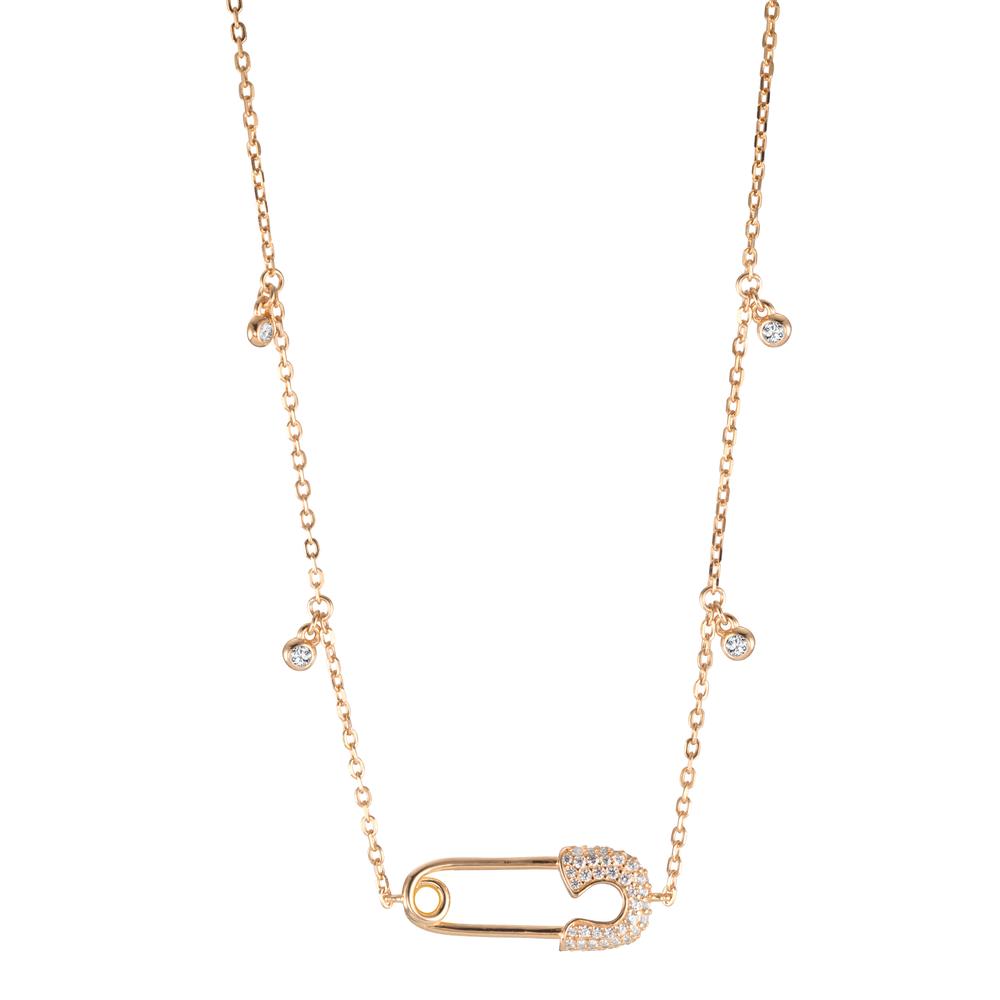 Elegantes Damen-Collier aus hochwertigem Silber, gestaltet als trendige Sicherheitsnadel mit funkelnden Zirkonia-Steinen. Die filigrane Kette wird durch kleine Glitzeranhänger ergänzt und verleiht jedem Outfit einen modernen und stilvollen Look. Ideal für den Alltag und besondere Anlässe.