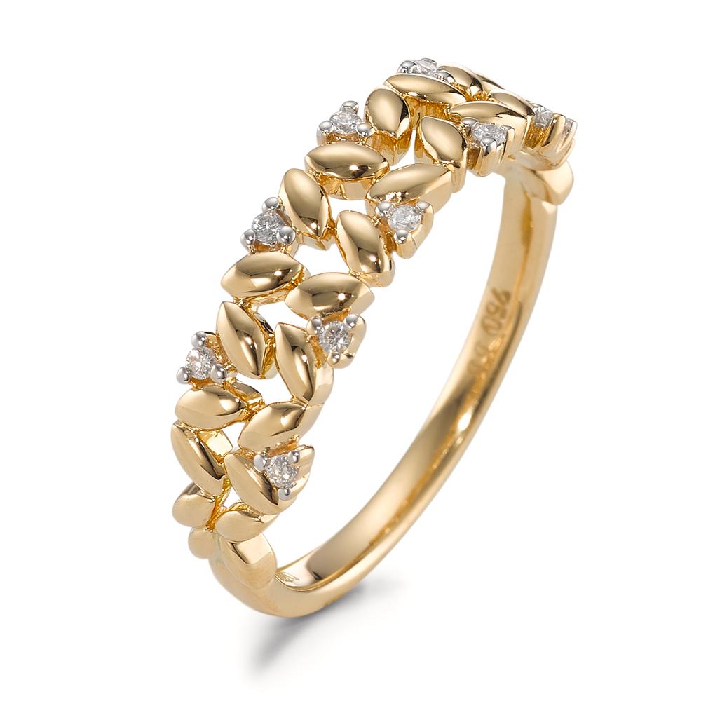 Fingerring 750/18 K Gelbgold Diamant 0.05 ct, 9 Steine, Brillantschliff, w-si bicolor