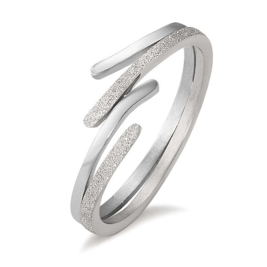 Eleganter Damen-Fingerring aus hochwertigem Edelstahl. Das moderne Design besticht durch filigrane, strukturierte und glatte Flächen, die dem Ring eine besondere Leichtigkeit und Stil verleihen. Perfektes Accessoire für jeden Anlass – langlebig und hautfreundlich.