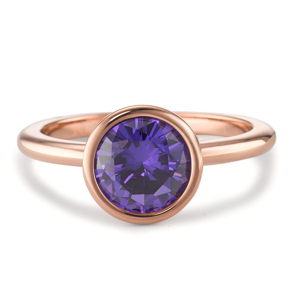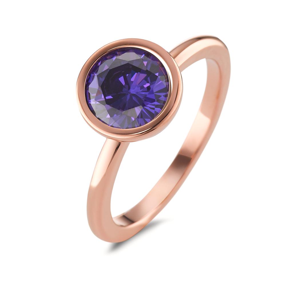 Eleganter Damen-Fingerring aus hochwertigem Edelstahl mit roségoldener Beschichtung. Der große, funkelnde violette Stein setzt einen stilvollen Akzent und macht diesen Ring zum perfekten Accessoire für jeden Anlass. Modernes Design trifft auf langlebige Qualität.