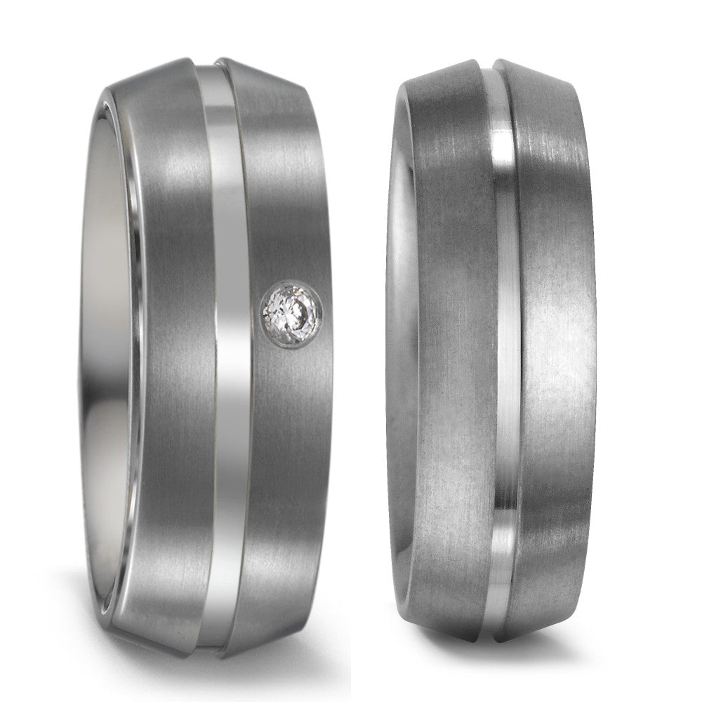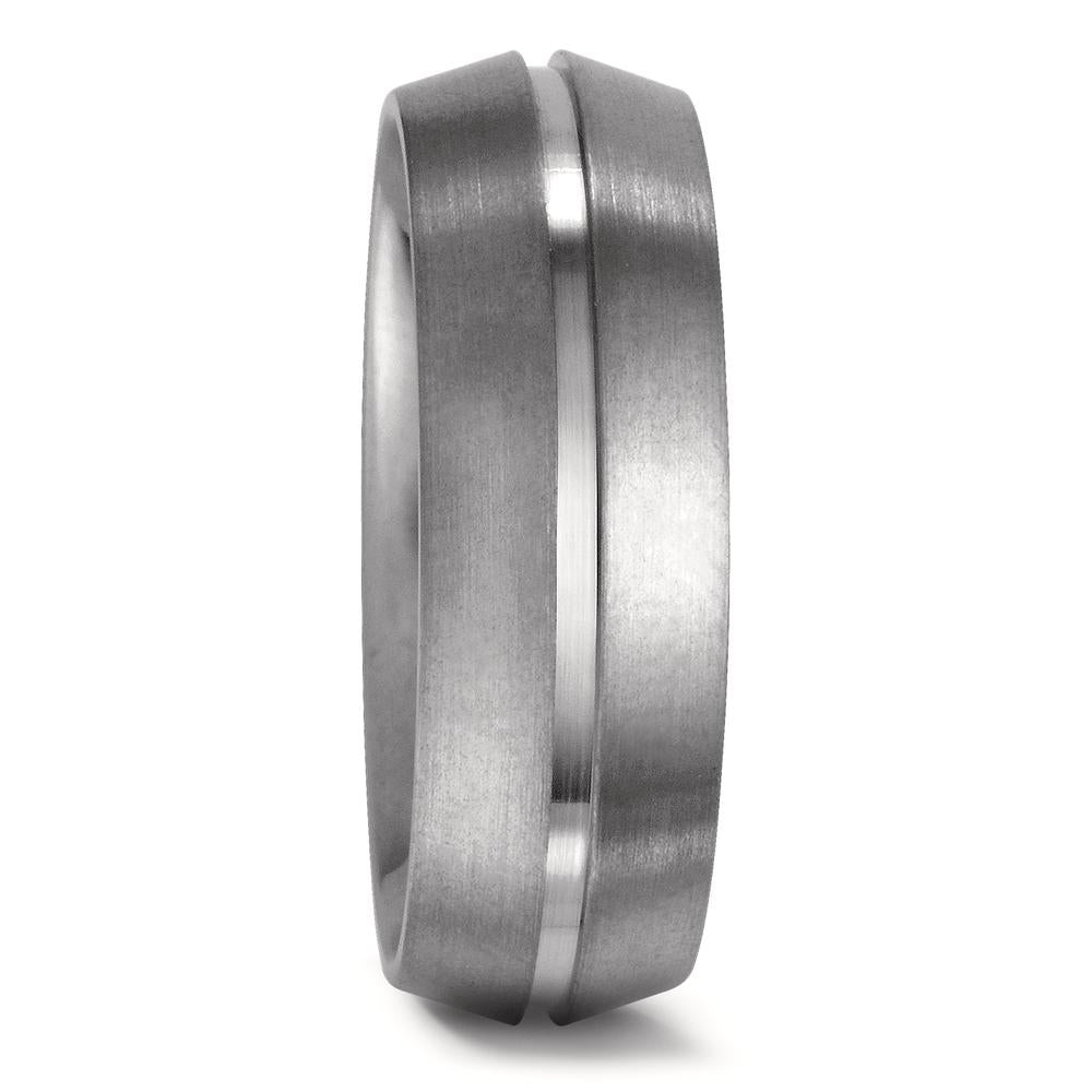 Moderner Fingerring aus hochwertigem Titan mit mattierter Oberfläche und einem markanten, leicht versetzten Design. Der Ring überzeugt durch seine Robustheit, Leichtigkeit und den zeitlosen Look – perfekt für den Alltag oder besondere Anlässe. Hautfreundlich und langlebig.