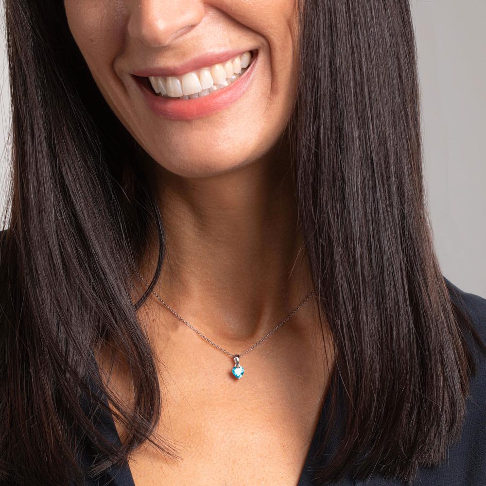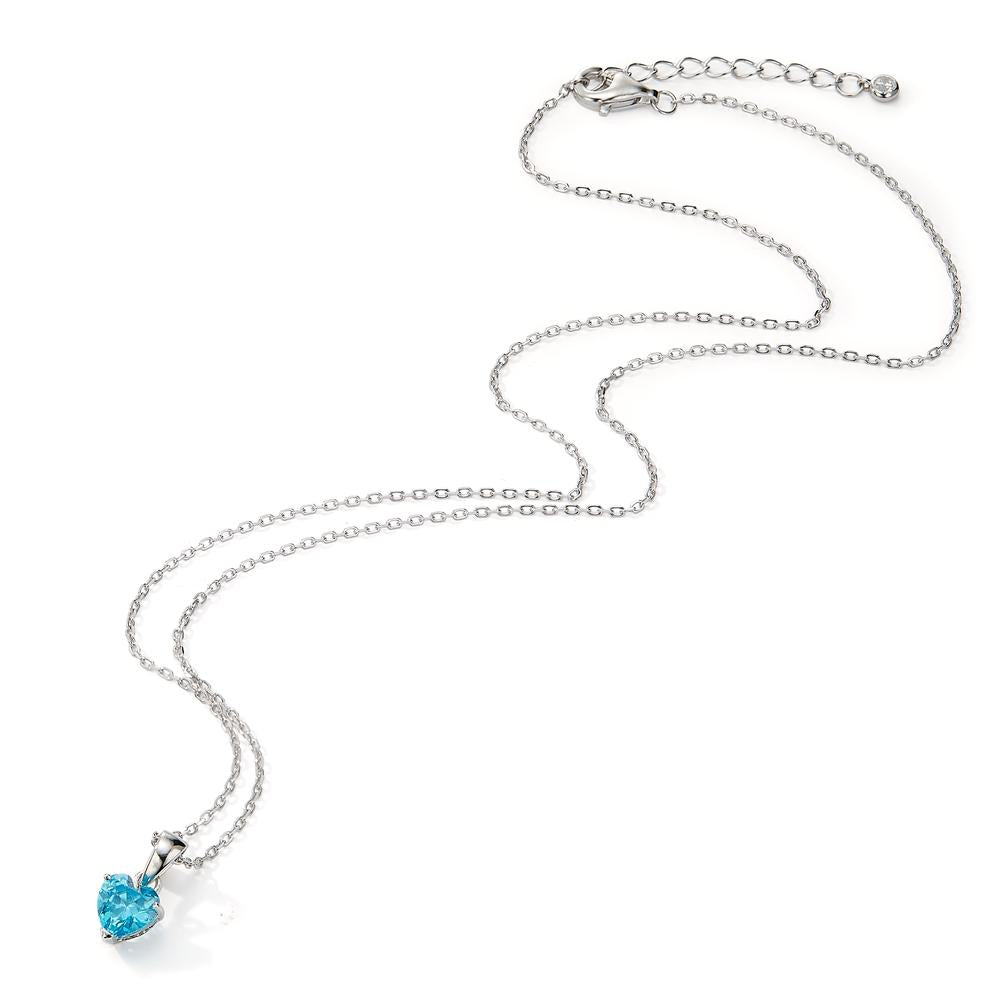 Halskette mit Anhänger Silber synth. Aquamarin rhodiniert Herz 42-45 cm verstellbar Ø6.5 mm