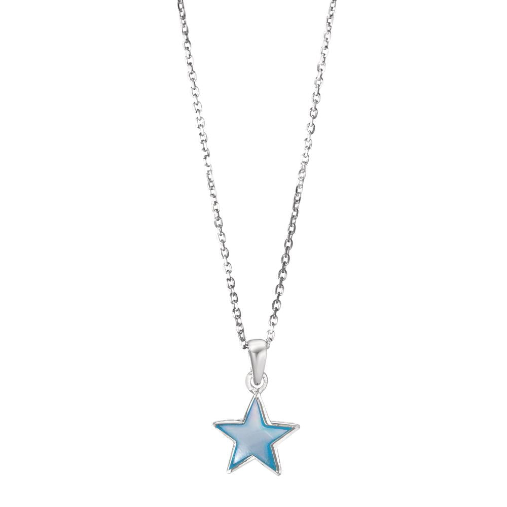 Halskette mit Anhänger Silber versilbert Perlmutt blau Stern 40-42 cm verstellbar Ø10 mm