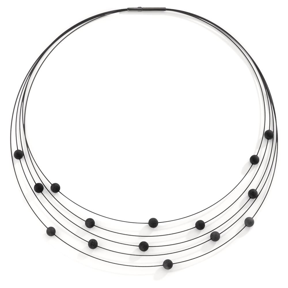 Spiralcollier Nera aus schwarzem Edelstahl mit Carbon, 42cm