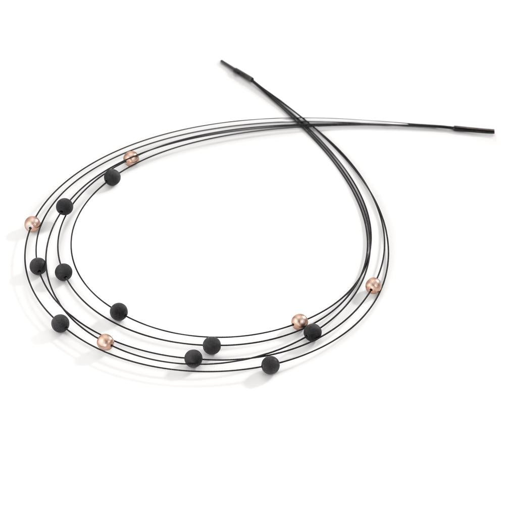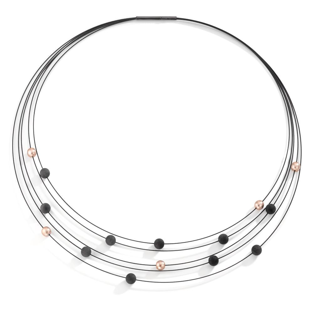 Elegantes Damen-Collier aus widerstandsfähigem Edelstahl kombiniert mit modernen Carbon- und Aluminium-Elementen. Das mehrreihige Design mit schwarzen und roséfarbenen Kugeln verleiht jedem Outfit einen individuellen und stilvollen Akzent. Leicht und angenehm zu tragen.